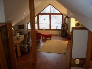 Stylische Ferienwohnung für zwei im Atelierstil. Die persönliche Lounge und ein wunderschöner Kaminofen ergeben auch eine ideale Winteroase .