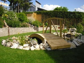 Ruhe, Entspannung, Familien, Wandern, Radeln, Walken, harmonisch-gemütliche Nichtraucherwohnung, Waldnähe, Spiel-Liegewiese, Rosengarten, Wassertreten