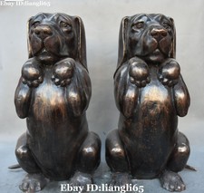 16 "Chinese Bronze Fengshui Sternzeichen Jahr Wilden Hund Hunde Tier Paar Statue